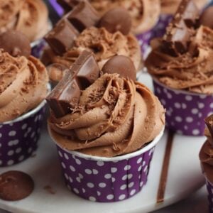 Using a 2D closed star piping tip, pipe the buttercream onto the cupcakes like an ice-cream at the beach looks so its the perfect ratio of buttercream to cake.
