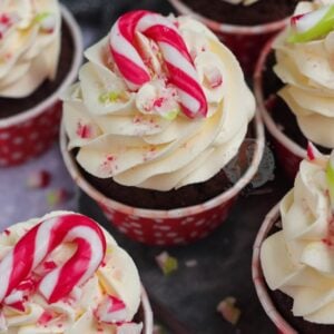 Sprinkle over some crushed candy canes, and add a mini candy cane to each cupcake!