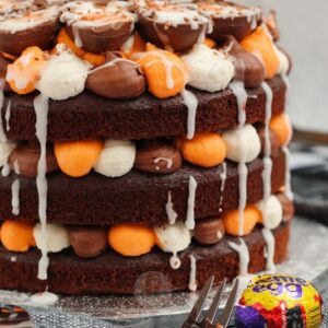Add Creme Eggs on the top you like! Add sprinkles, and add an icing drizzle if you want by mixing the icing sugar and water together and drizzling but this is all optional.
