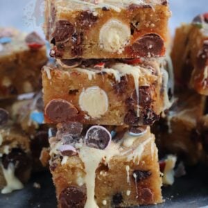 Bake the blondies in the oven for 25+ minutes, until there is an ever so slight wobble in the middle.