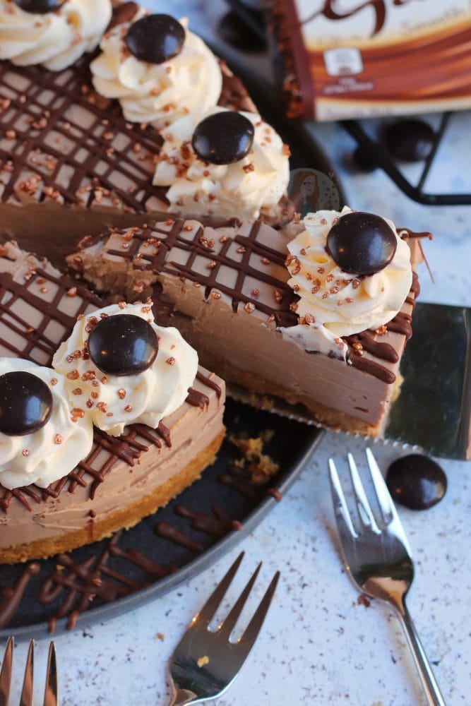 A creamy, sweet, and delicious no-bake Galaxy cheesecake with whipped cream, Galaxy chocolate, Galaxy minstrels and more!
