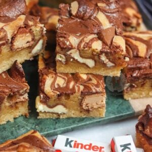 Add in most of the kinder chocolate, and kinder bueno, and fold through.