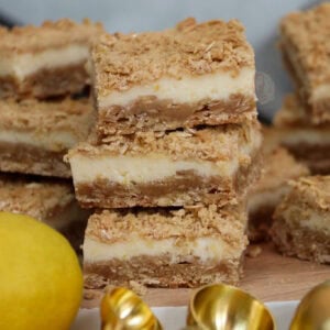 Sweet and zingy lemon crumble bars with an oat crumble base, lemon filling and oat crumble on top - easy and delicious