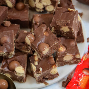 Sprinkle on the other bag of Maltesers and press into the top of the fudge and store in the fridge for at least 3-4 hours (Or preferably overnight) to set!