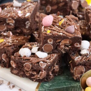Drizzle the brownies with melted milk chocolate, and then sprinkle over some crushed mini eggs for decoration