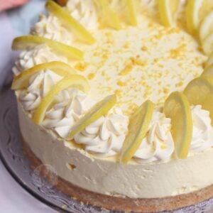 Whisk together your double cream and icing sugar until pipeable. Pipe onto your cheesecake with your favourite tip.