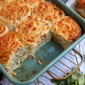 Roll the dough from long side to long side, so that a ~long sausage~ is formed. Cut this evenly into 12 pieces.