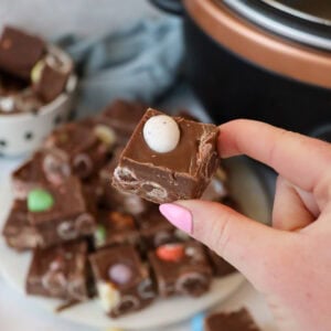 If you don't have a slow cooker you can make this fudge by melting the chocolate and condensed milk in a bowl in the microwave on low, stirring often until smooth - or super low on the hob in a pan.