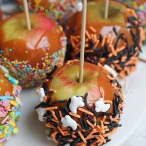 If coating in sprinkles, roll the apple carefully in sprinkles now