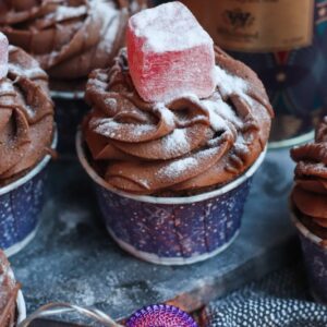 If you can’t access the hot chocolate, you can use normal cocoa powder and just have the Turkish Delight piece on top for decoration!